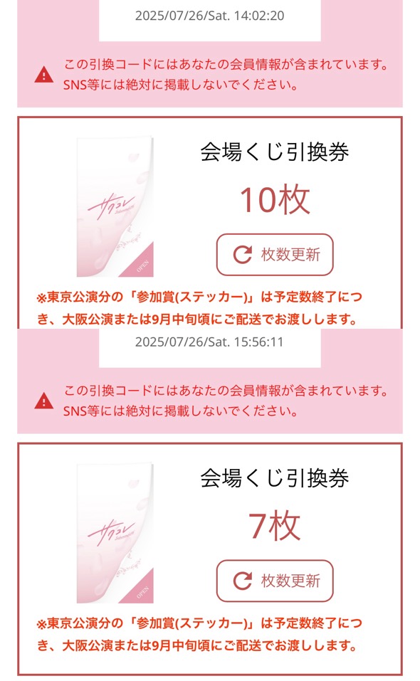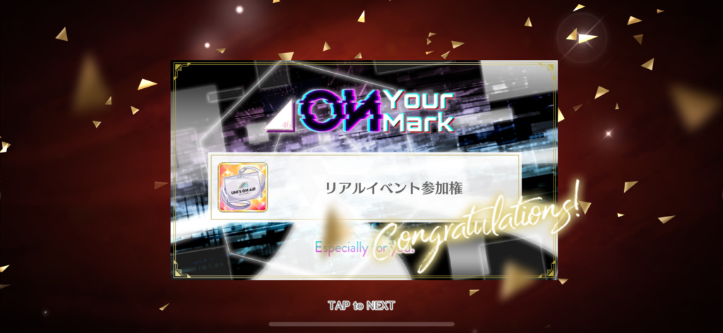 1/4ほどの確率だと思いますが、リアルイベント参加権の抽選当選しております🤯
