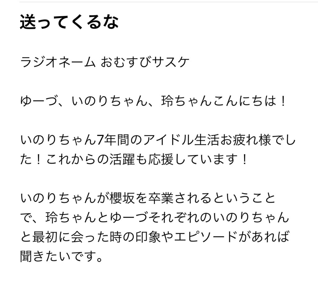 先日の櫻坂46の「さ」でおむすびサスケ名義でついにお便りを読んでもらえました!←
